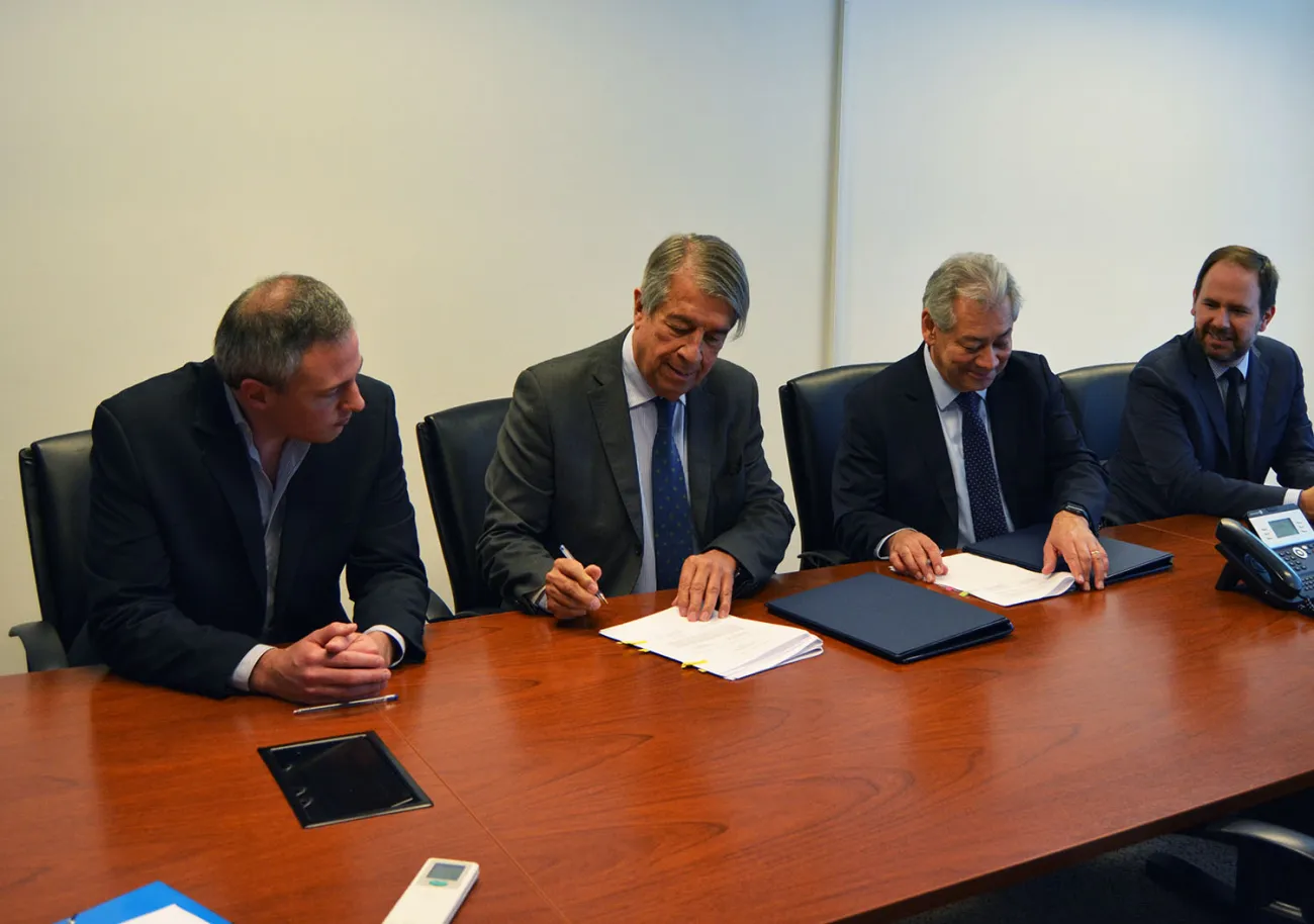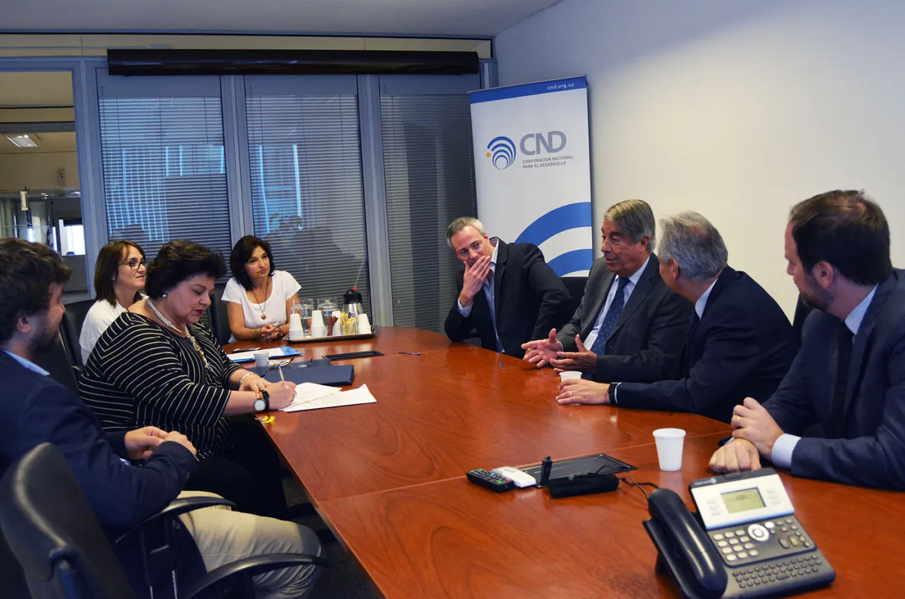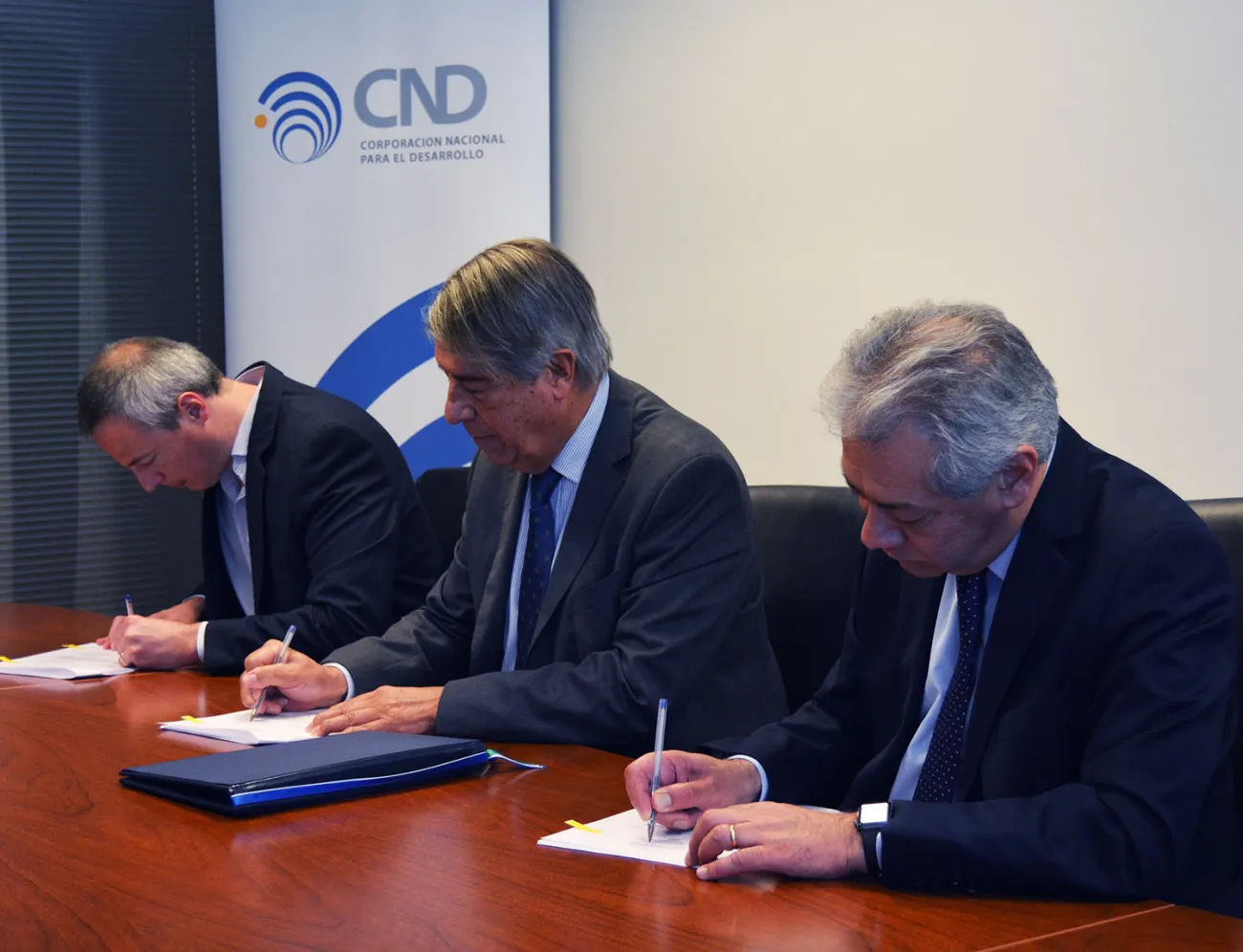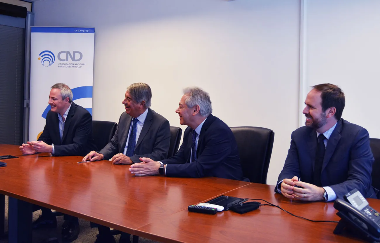 El convenio fue firmado por el presidente de CND, Cr. Jorge Perazzo, el vicepresidente de CND, Ec. Germán Benítez, el director represente de CAF en Uruguay, Germán Ríos.